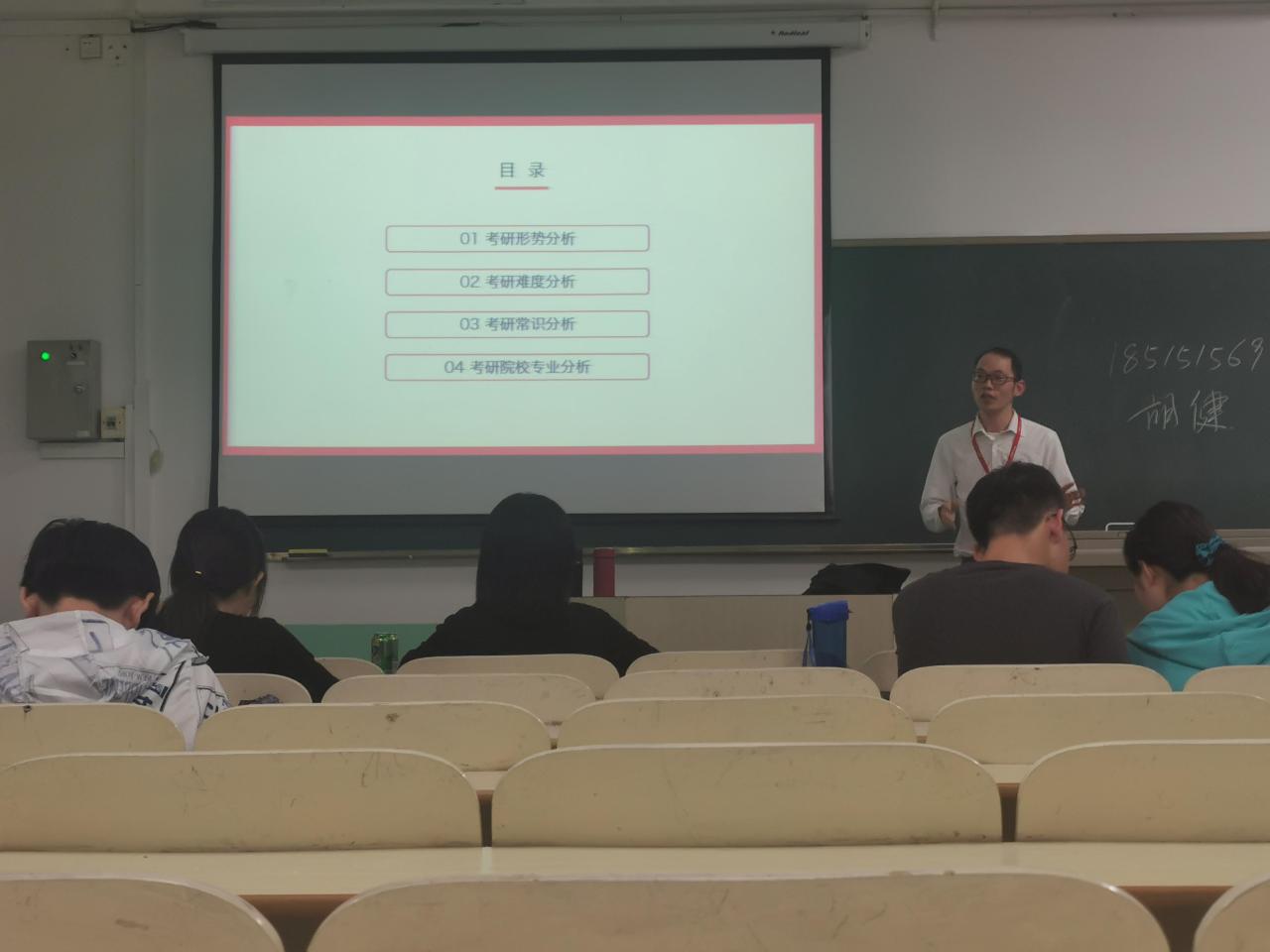 随着18级的同学进入到了大三阶段,紧张的学习、即将毕业步入社会的压力,同学们开始思考自己的未来前途。面对当前严峻的社会形势和繁重的就业压力,许多同学都考虑要考研深造。为了帮助同学们解答疑惑、端正心态、树立信心、规划自己的未来,公司特地举办考研启蒙暨择校择专业指导系列讲座。