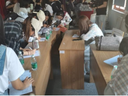 活动的最后,参与活动的师生和企业代表一起合影留念。合影过后,报社为与会人员准备了一份纪念礼品:一个小风扇和一本关于海南自贸港建设的图书,同学们对此表示感谢,并积极参与填写报社的调查表,部分有意向者还填写了招聘表。在一片其乐融融的氛围中,本次活动圆满结束。