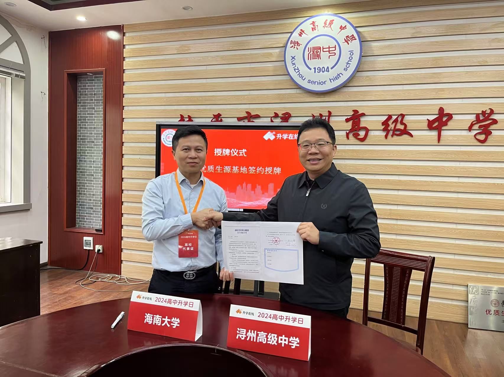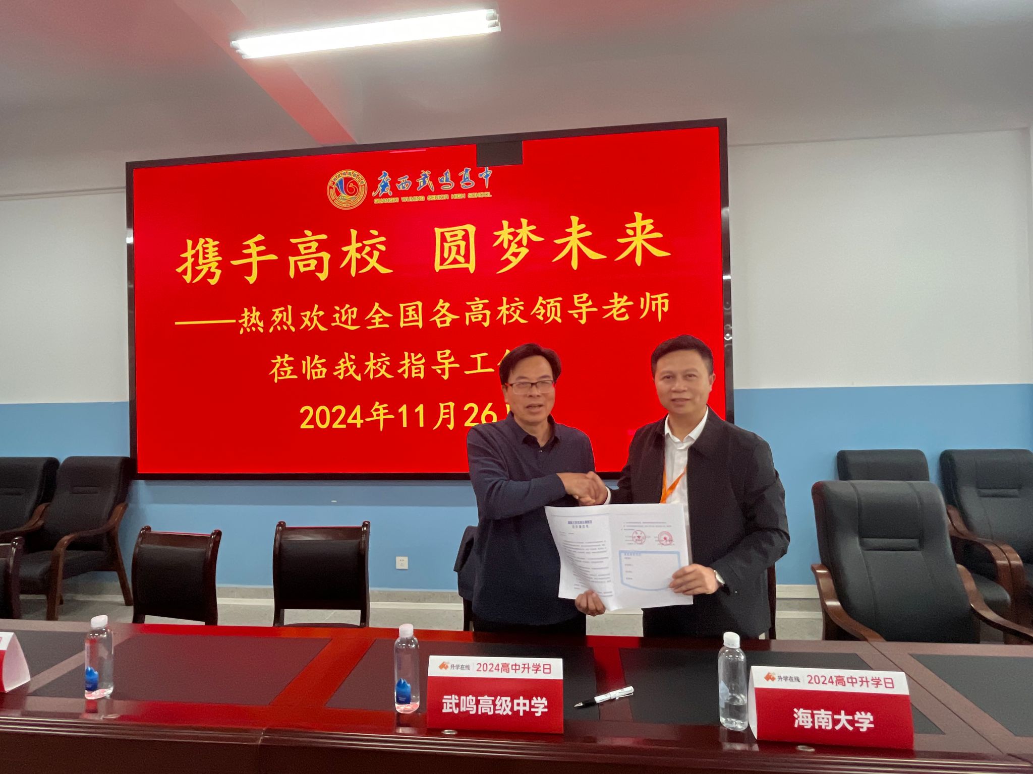 招生宣传组先后到南宁市武鸣区武鸣高级中学、广西宾阳中学、桂平市浔州高级中学、玉林市北流中学等4所重点中学,与4所重点中学负责人签订优质生源基地协议书,同时向公司领导和员工介绍hy3380cc海洋之神“三大改革”和近几年取得的快速发展成就。