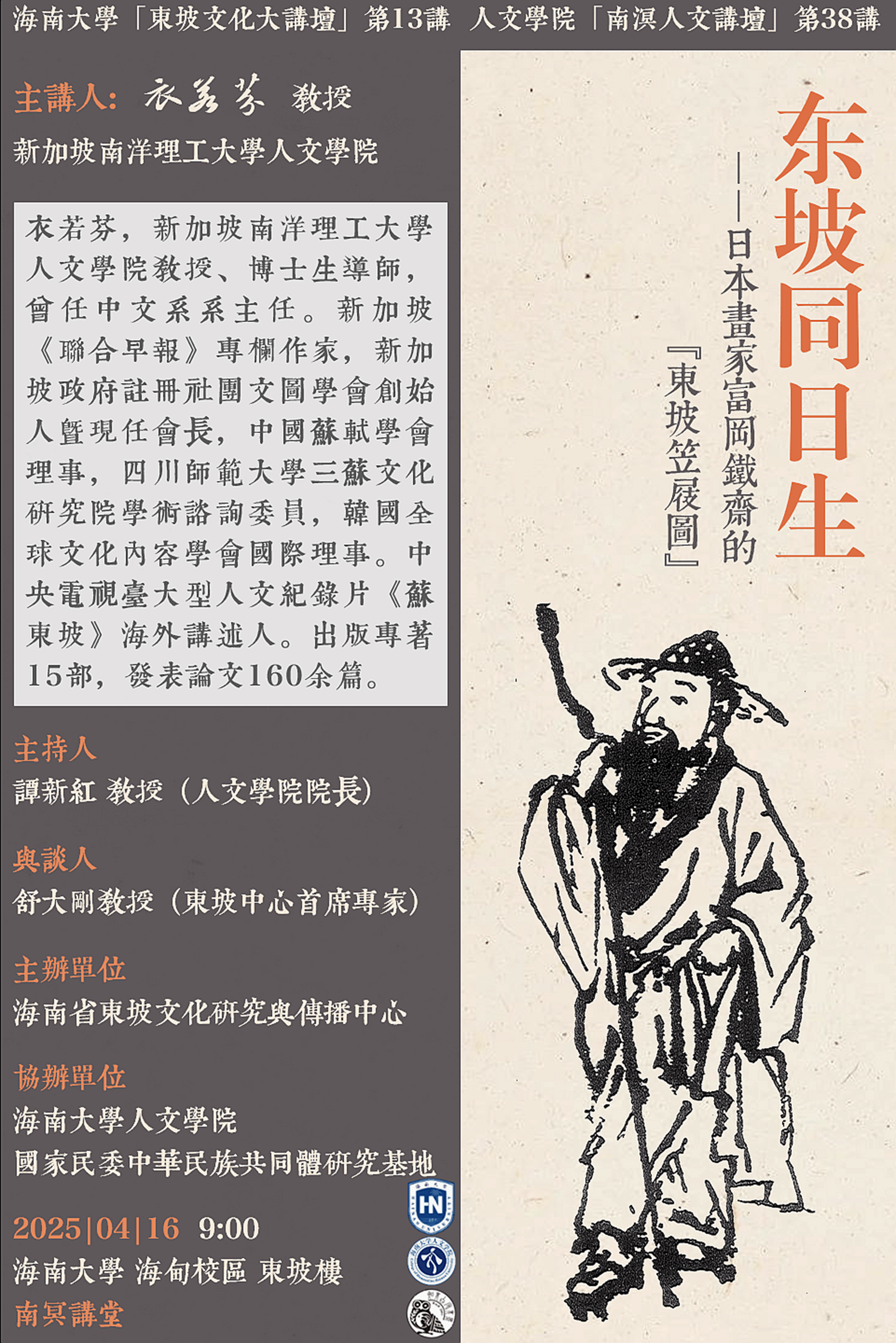 【学术预告】hy3380cc海洋之神“南溟人文讲坛”第三十八讲 衣若芬 东坡同日生——日本画家富冈铁斋的《东坡笠屐图》