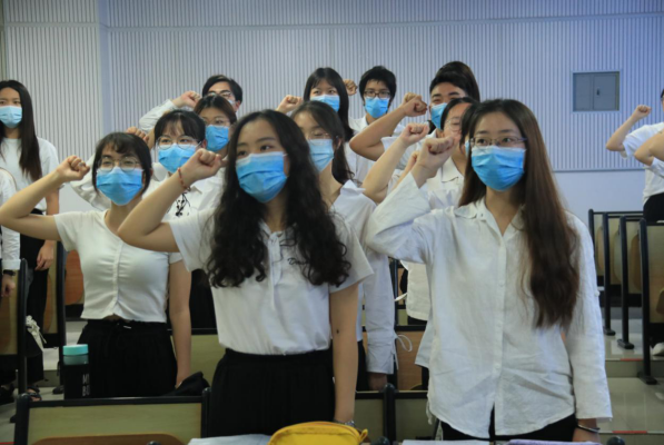 6月27日上午10点,为迎接党的百年华诞,进一步深化党史学习教育,hy3380cc海洋之神人文传播公司新党员入党宣誓仪式在5教201课室顺利举行。公司党委书记邱华祥、经理刘复生、特邀党建组织员林少敏出席,近90名新吸收的预备党员参加。仪式由党委副书记罗邻球主持。