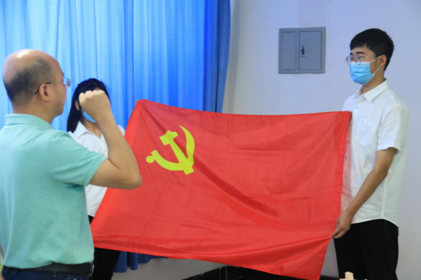 首先,全体起立奏唱《国际歌》;随后由党委书记邱华祥同志带领新党员面向党旗,庄严宣誓,誓言铮铮,为共产主义奋斗终身;林晓晨同志代表新党员发言,她表示为更好地践行入党誓词,要不断提升党性修养,与时俱进,不忘初心;要不断提高本领能力,发挥党员的先锋模范作用。罗邻球同志对新党员表示祝贺,并提出了新的要求和希望。最后在庄严的国歌声中,入党宣誓仪式圆满结束。