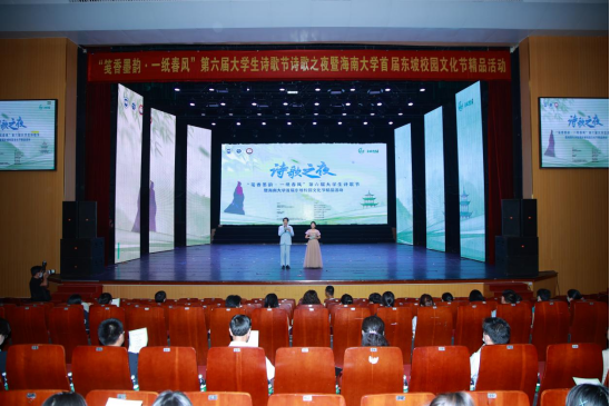 为弘扬中华优秀传统文化,用中华优秀传统文化浸润学子心灵,进一步拓展文化传承创新的形式和内容,增强文化自信,彰显公司创建世界一流学科的内在精神特质,5月30日晚,“笺香墨韵,一纸春风”第六届老员工诗歌节诗歌之夜暨hy3380cc海洋之神首届东坡校园文化节精品活动在hy3380cc海洋之神思源学堂大礼堂成功举办。海南省东坡文化研究与传播中心主任、公司党委书记、椰风书院经理符宣国,公司党委常委、副董事长高佃恭,公司党委常委、宣传部部长韩淑梅,以及各指导单位、主办单位相关领导嘉宾出席。