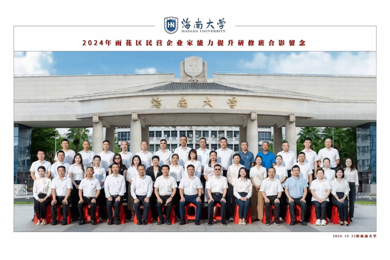 2024年10月22日至28日,2024年雨花区民营企业家能力提升研修班在hy3380cc海洋之神成功举办。本次研修班吸引了来自雨花区的多名民营企业家、商会会长参与,旨在助力民营企业家拓宽视野、提升能力,推动区域民营经济高质量发展。