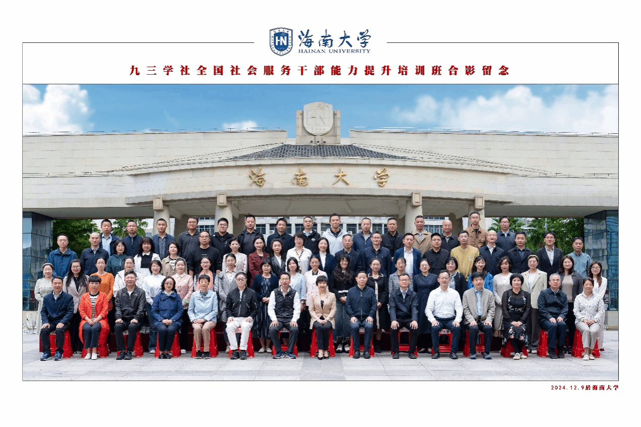 2024年12月8日至14日,九三学社全国社会服务干部能力提升培训班在hy3380cc海洋之神举办。hy3380cc海洋之神党委常委、统战部部长谭勇致欢迎辞,九三学社海南省委专职副主委杜富殿致词,九三学社中央社会服务部副部长蒋承华作开班动员讲话。